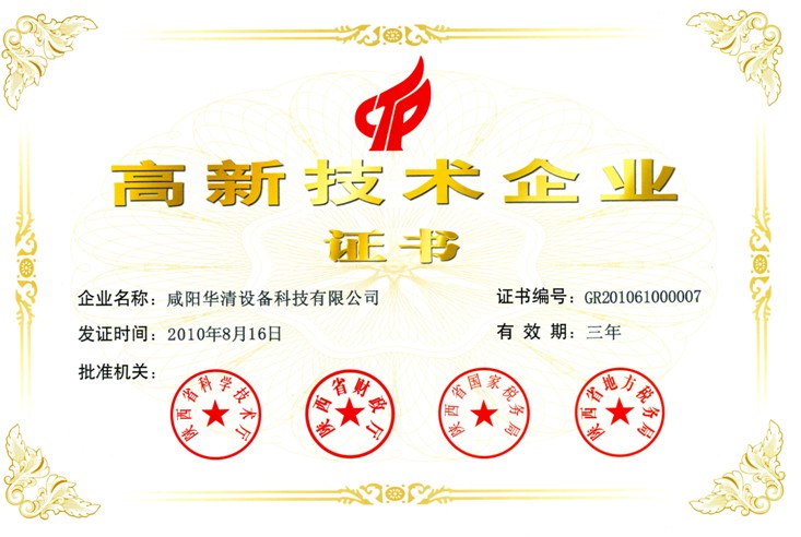 根據國家2008年對高新技術企業重新審核認定文件(國科發火【2008】172號)、《高新技術企業認定管理工作指引》(國科發火【2008】362號)的要求,公司通過認真的自查和充分的準備,2009年10月通過咸陽市科技局提交了陜西省高新技術企業認定申報資料,經陜西省高新技術企業認定管理工作領導小組辦公室組織專家評審,并報全國高新技術企業認定管理工作領導小組辦公室備案,2010年8月16日我公司正式被認定為陜西省高新技術企業。